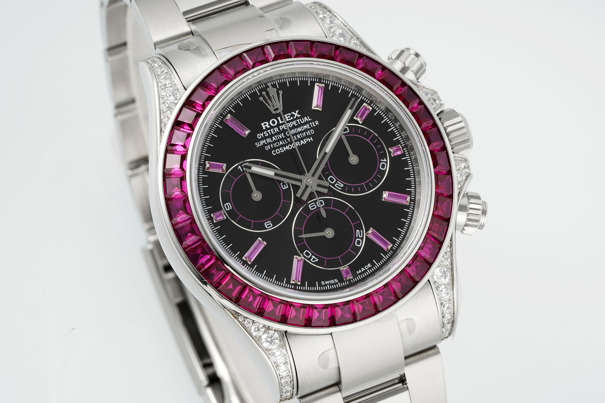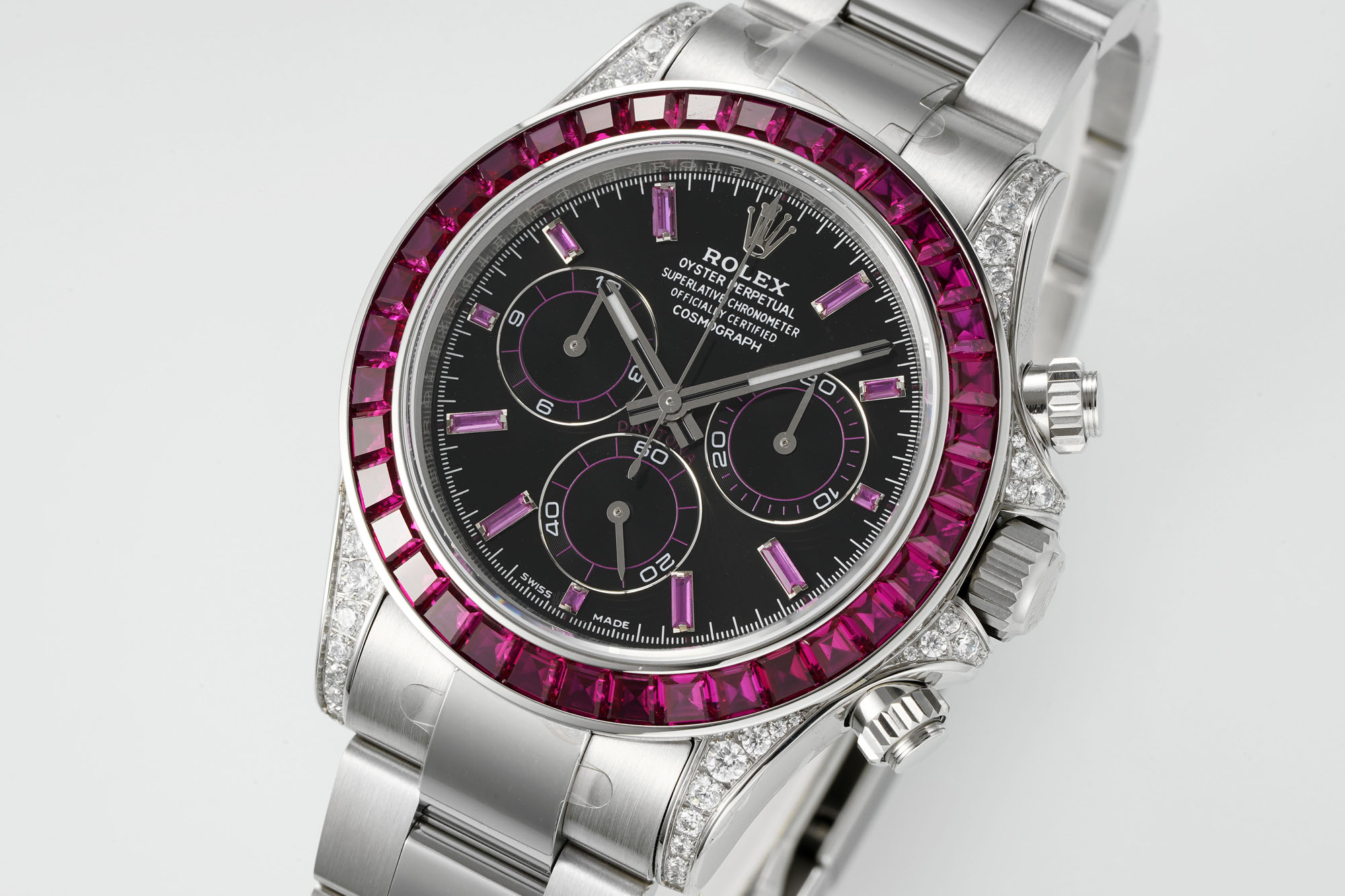 Experience the luxury of a custom Rolex Daytona with CVD lab-grown diamonds, offering exceptional hardness and a unique, original feel. A standout timepiece.