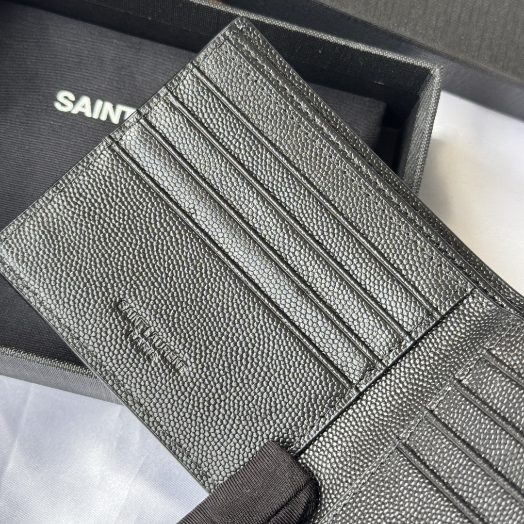 I love my new Saint Laurent wallet! The caviar leather feels so luxurious, and the silver hardware is a nice touch. It has plenty of space for my cards and cash.