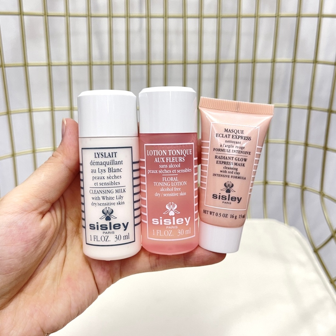 Experience luxury skincare with this Sisley set. Includes Emulsion Ecologique 50ml, Lotion Tonique 30ml, and Masque Eclat Express 15ml.