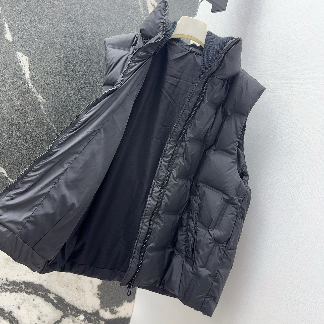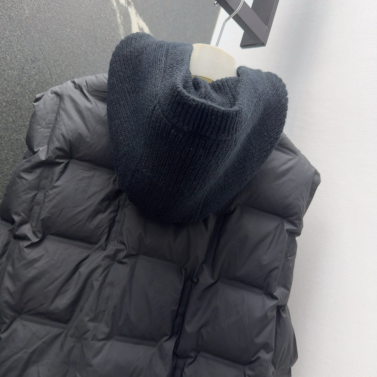 Sleeveless Padded Vest With Detachable Knitted Hat Minimalist Style
