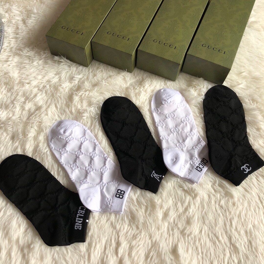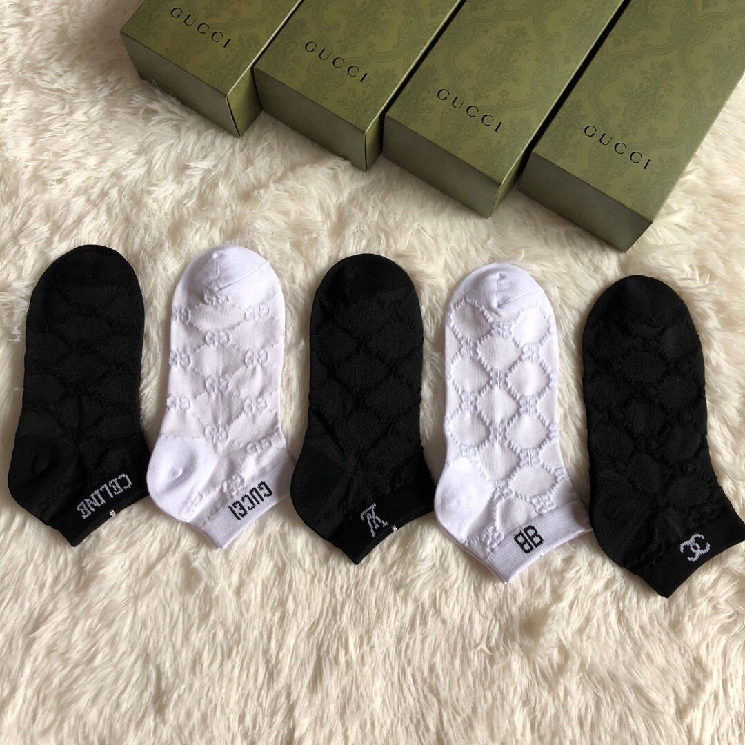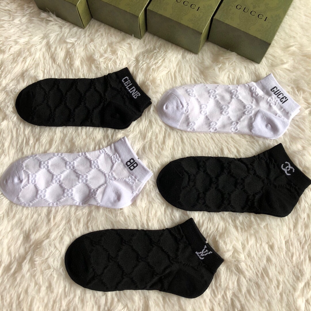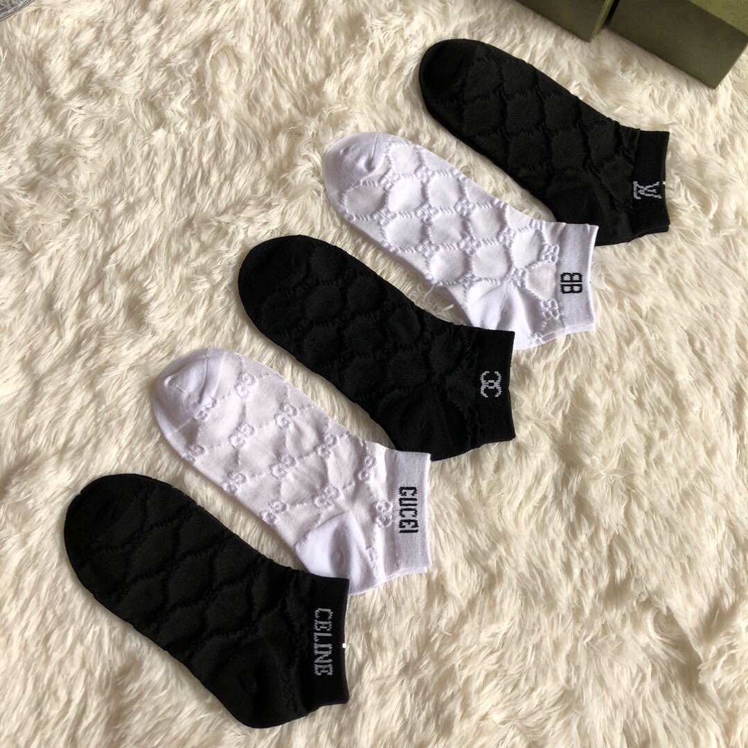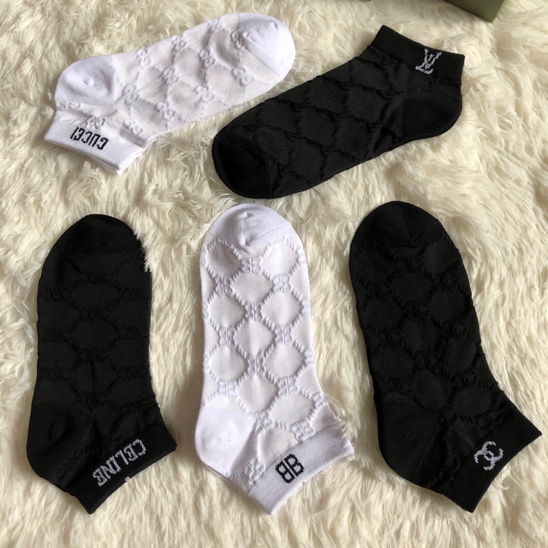 Special batch of 200 🆕【Hot collection of trendy brands】❗️ Hot new women's socks ❗️【Five pairs in a box】Made of pure cotton material, dark jacquard classic logo, soft and comfortable, big brands out on the street, a must-have for fashionistas🔥super easy to match ❗️