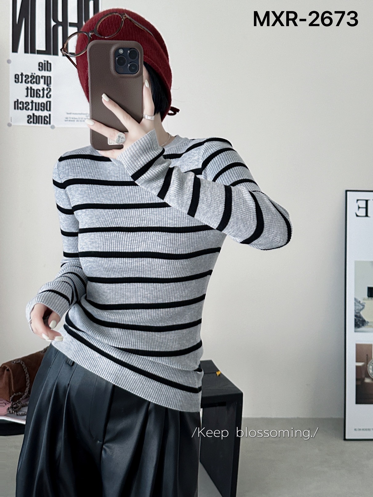 Upgrade your wardrobe with this soft merino wool blend sweater. Features a classic crew neck and stylish stripes. Available in multiple colors.