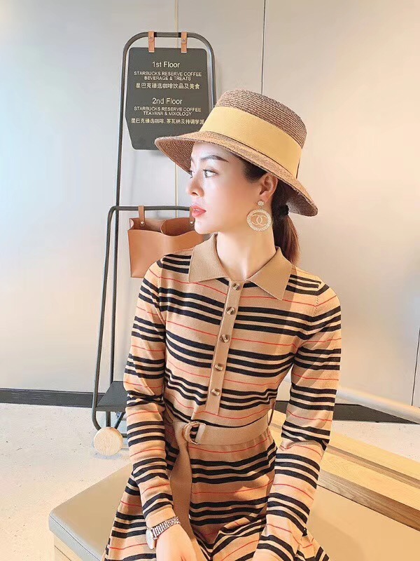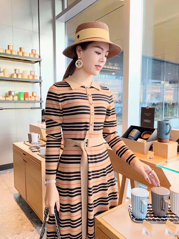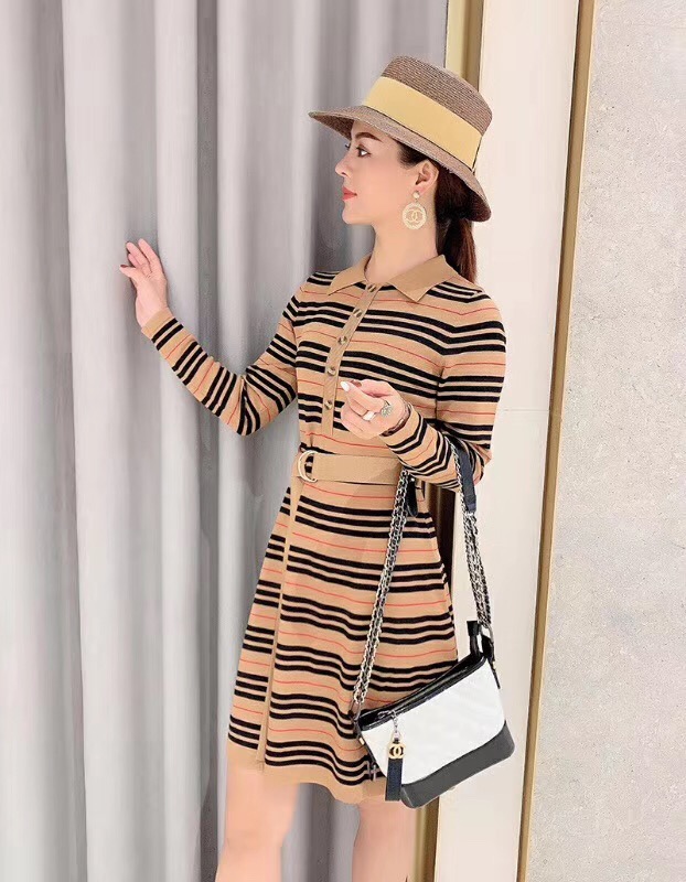 This stylish striped knit dress is a versatile addition to any wardrobe, perfect for both casual outings and more dressed-up occasions.