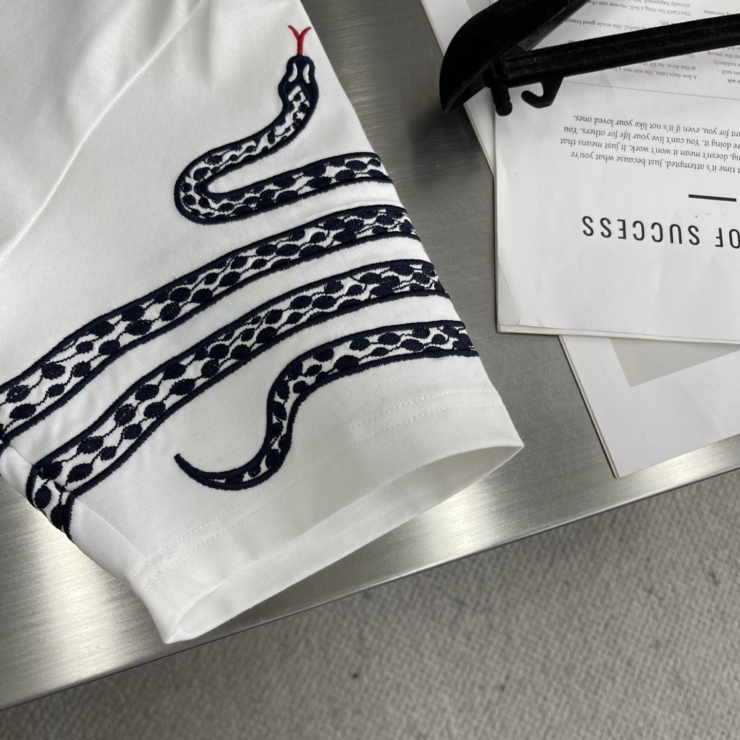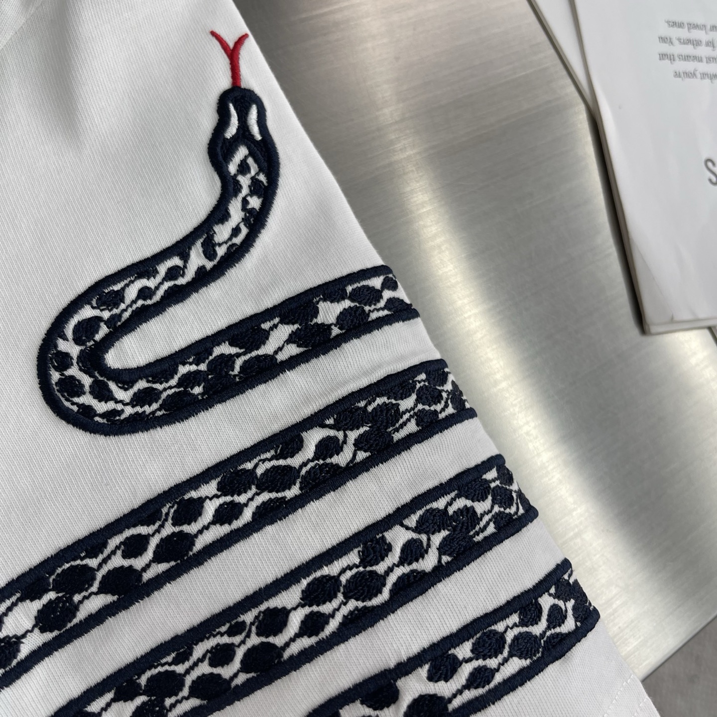 Thom Browne White Cotton T-Shirt with Snake Embroidery Short Sleeve