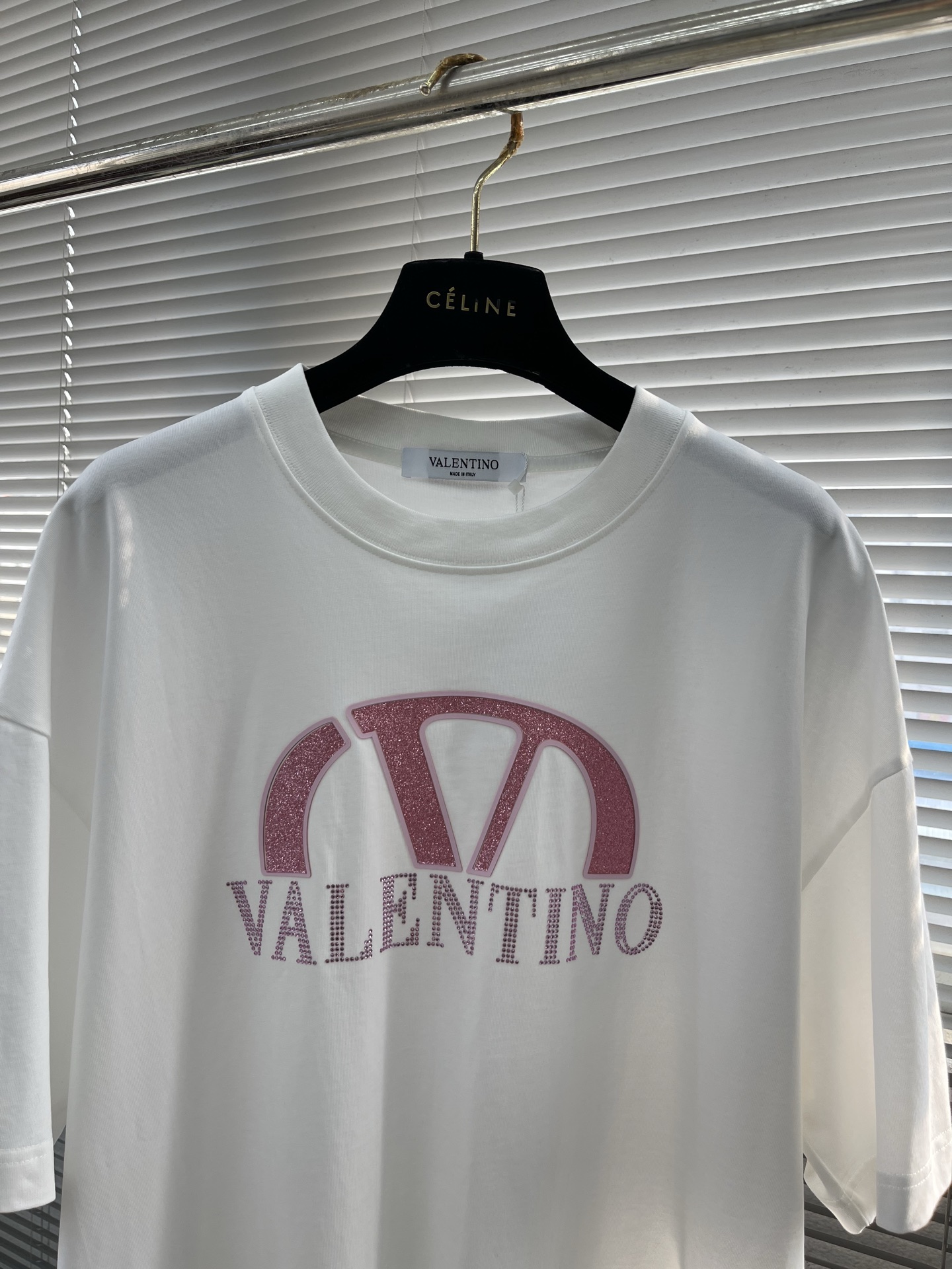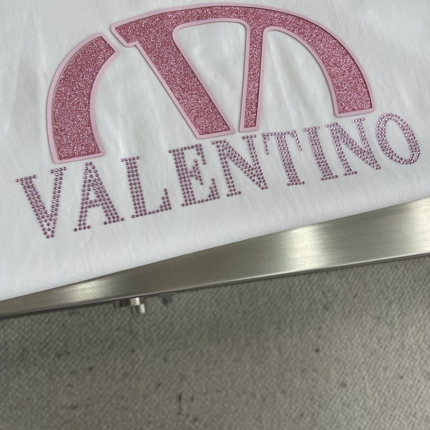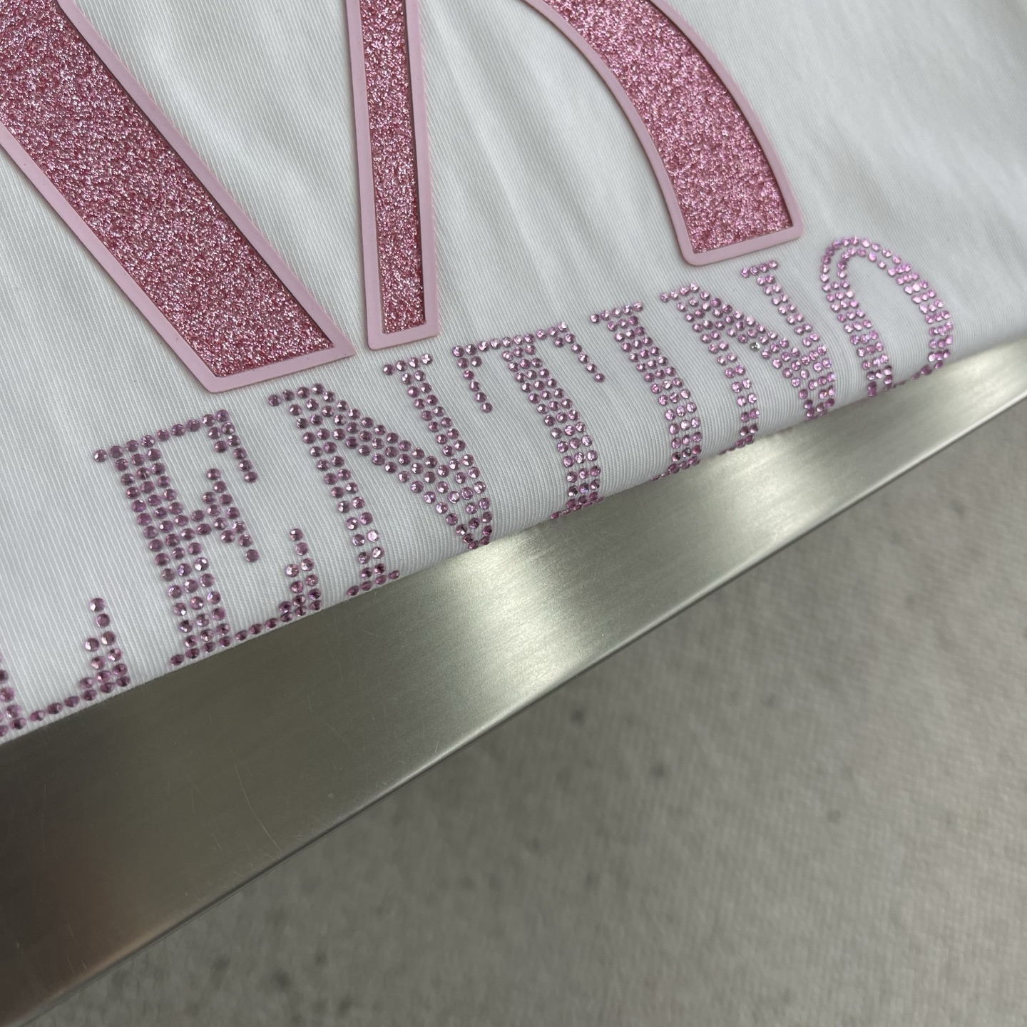Valentino VLTN Pink Rhinestone Logo Cotton T-Shirt Unisex
