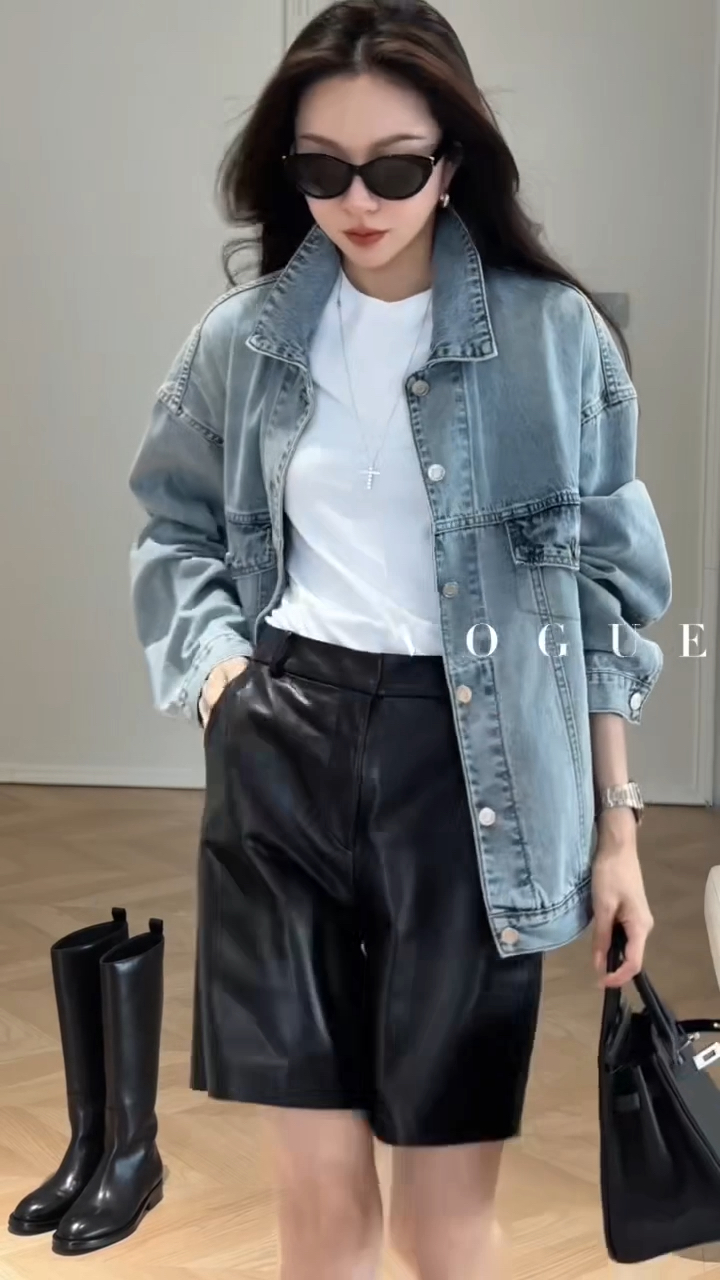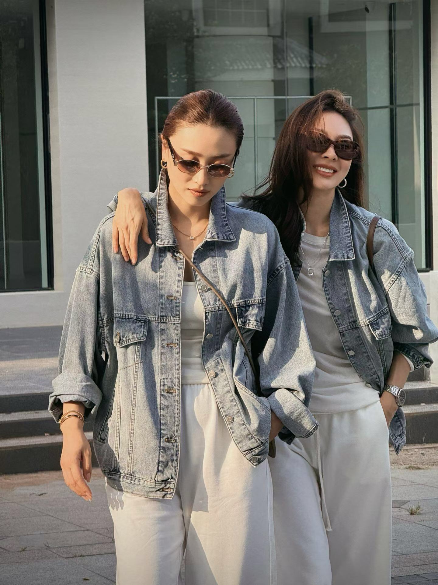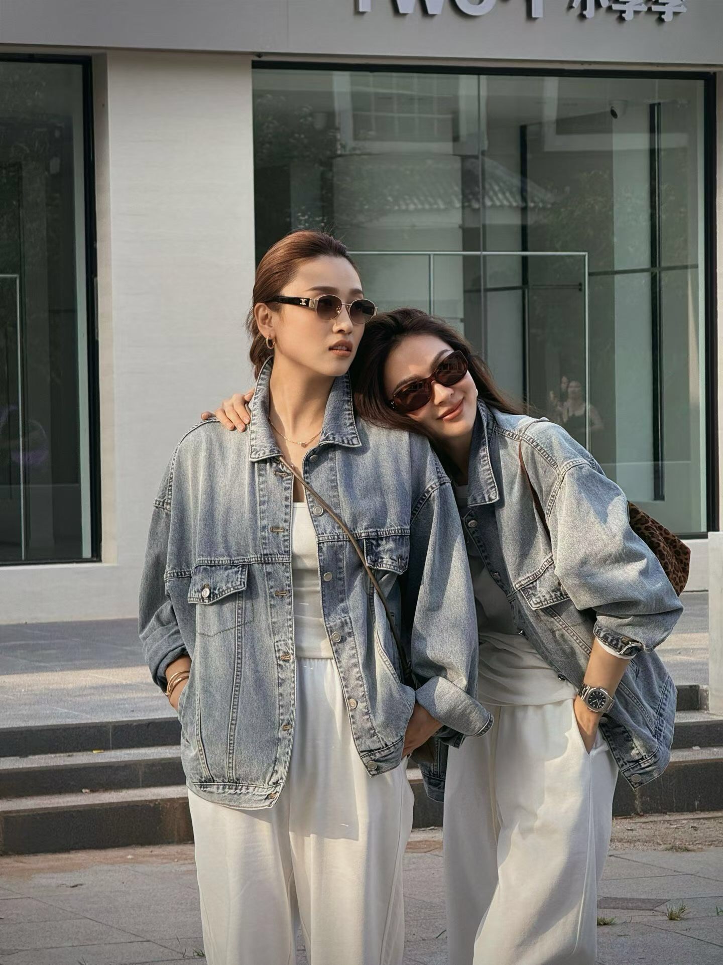 This vintage denim jacket is a timeless piece with a modern twist. The oversized fit and distressed wash give it a relaxed, effortlessly cool vibe.