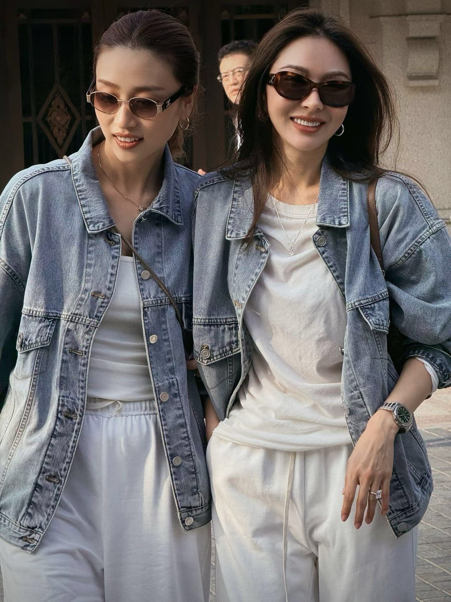 Vintage Oversized Denim Jacket, Turn-Down Collar, Strong Design Feel, S-XL
