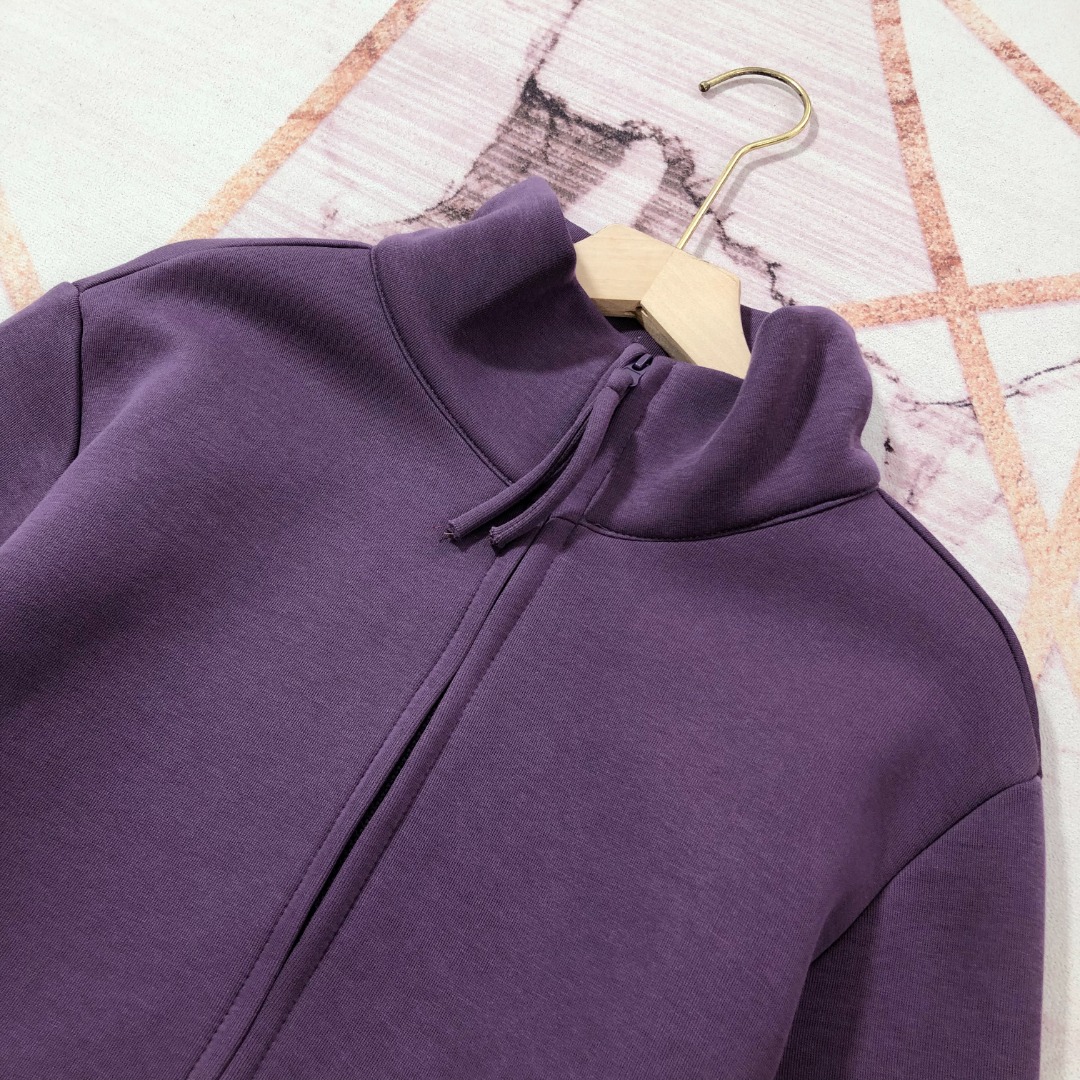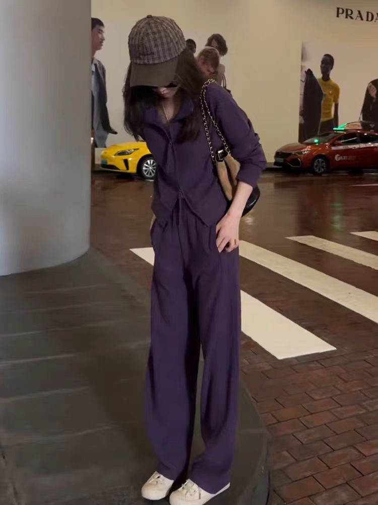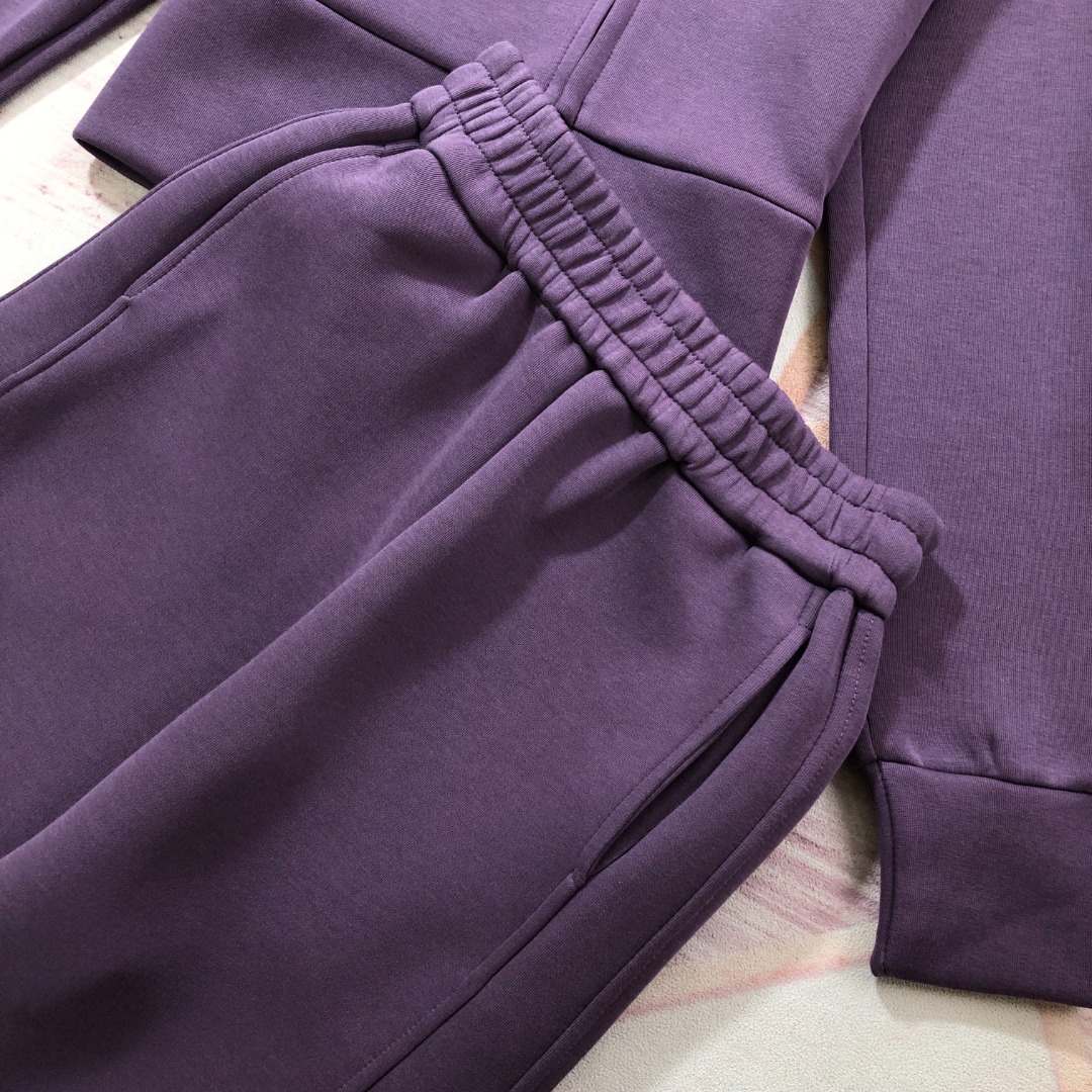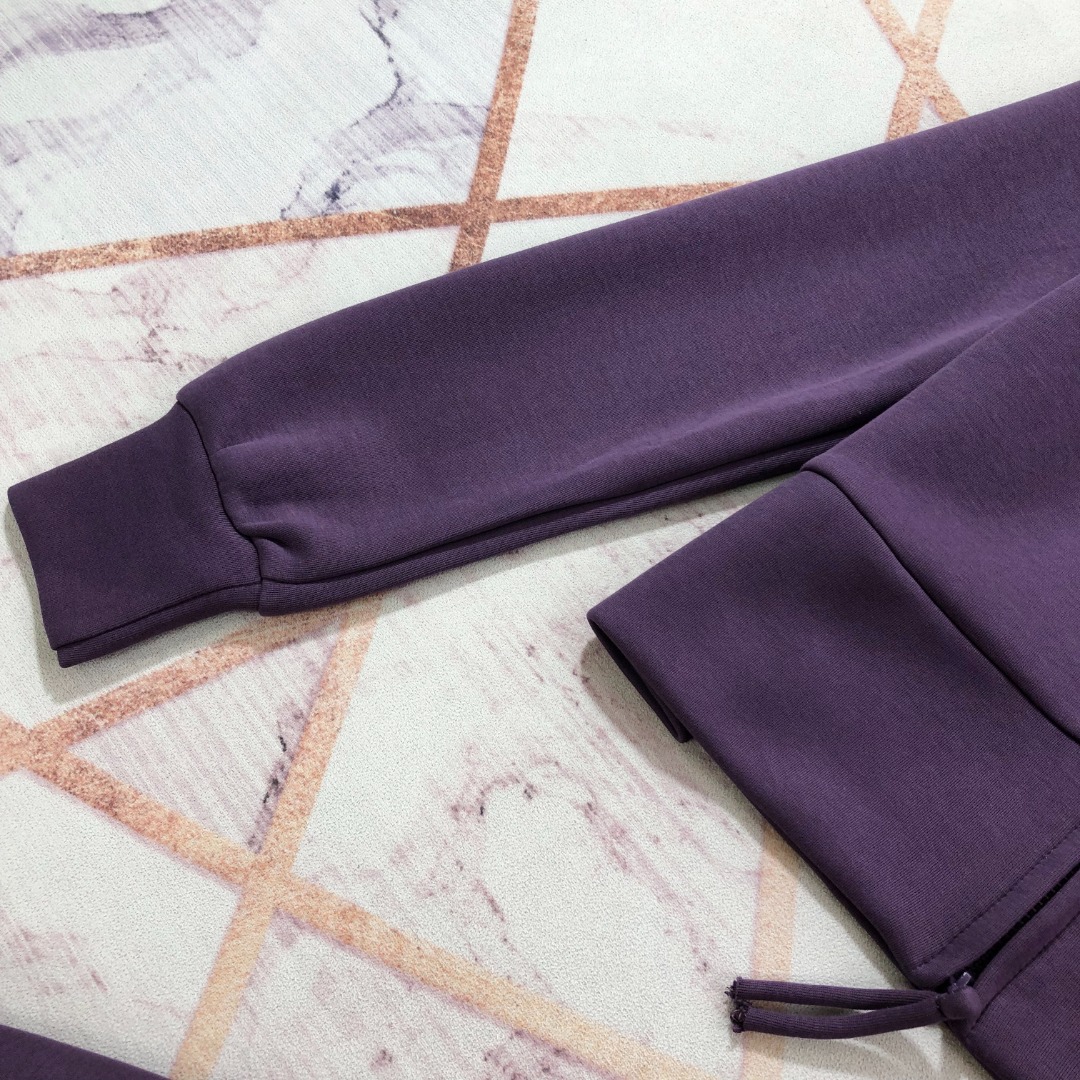 Women's Casual Purple Cotton Two Piece Set - Hoodie and Wide Leg Pants