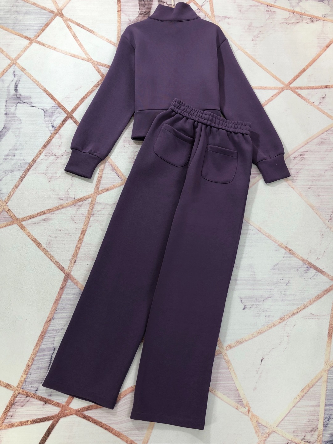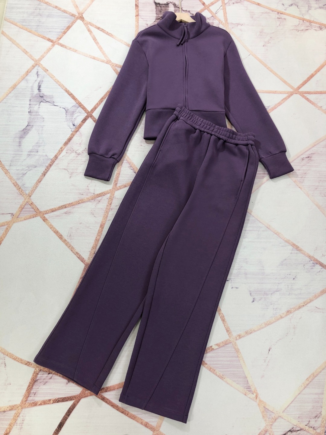 - Coordinated Set: Includes a zip-up hoodie and wide-leg pants for a complete look.