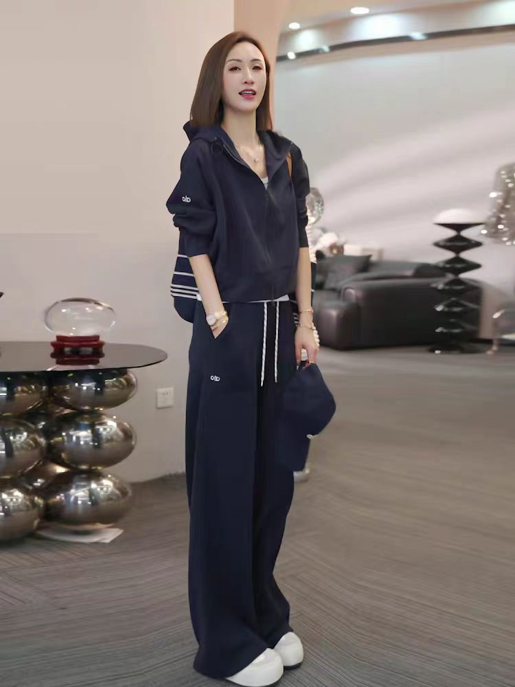 - Stylish Design: Features a zip-up hoodie and straight-leg pants.