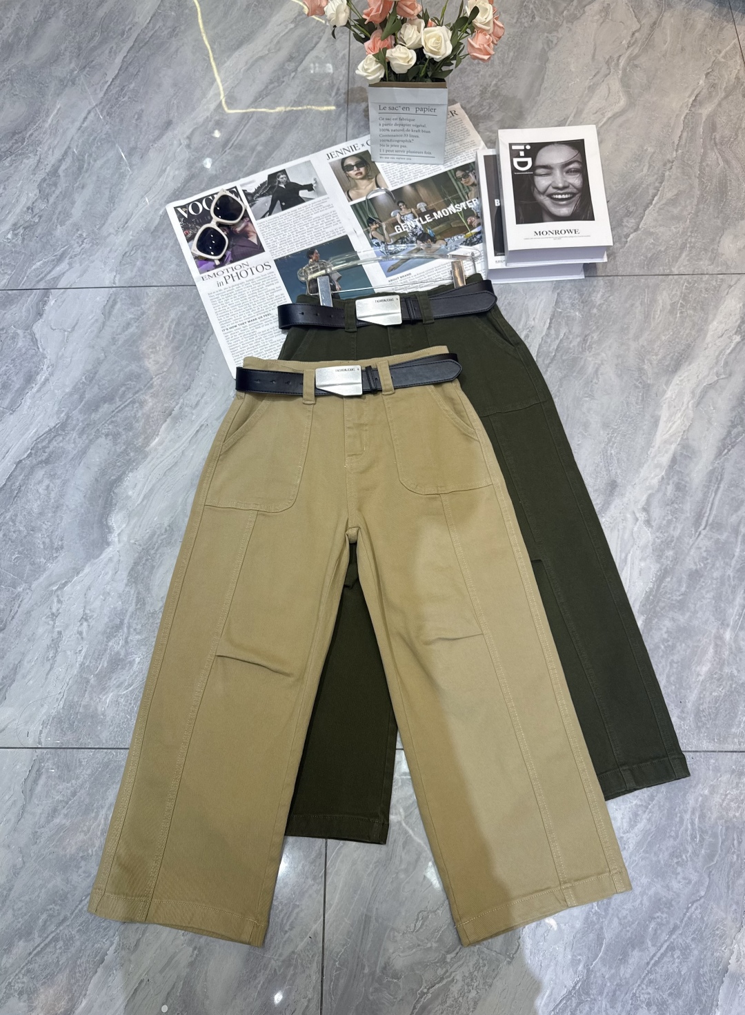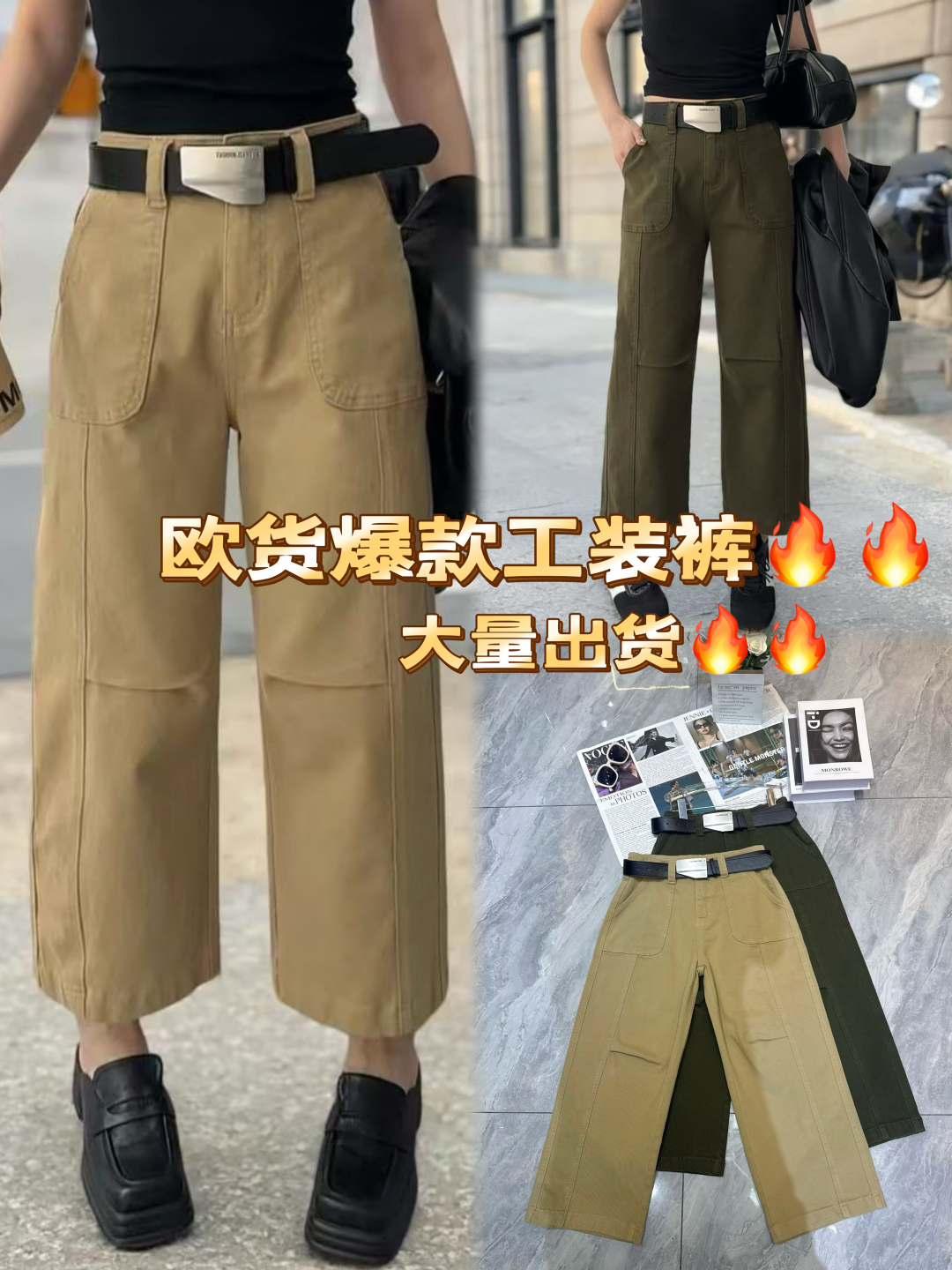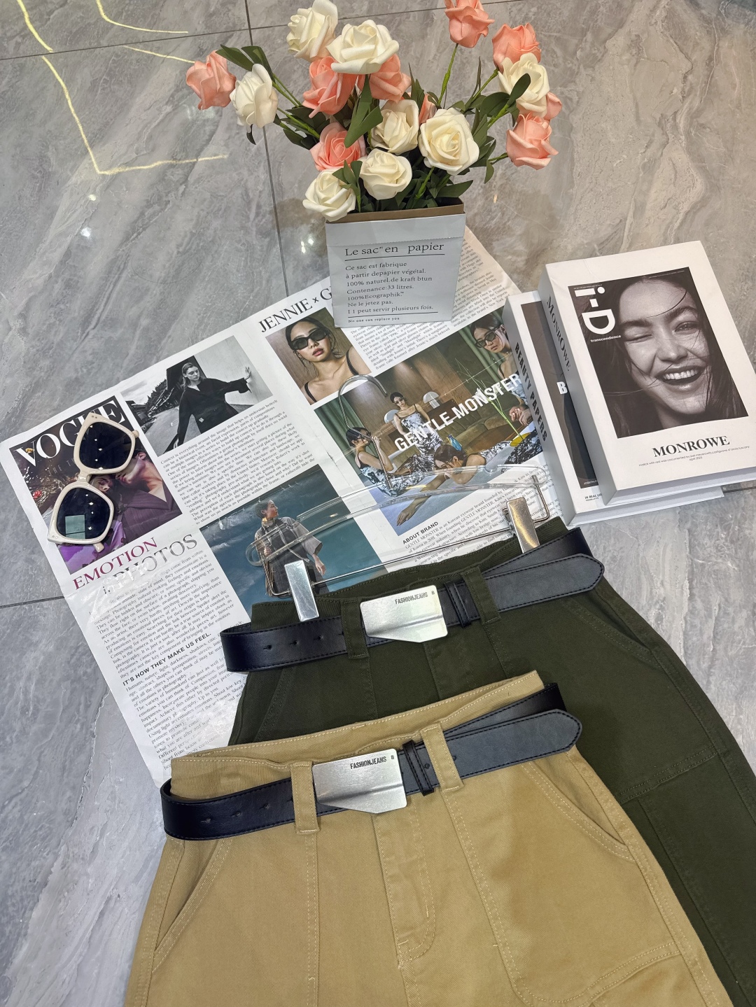 Elevate your style with these wide-leg cargo pants. Crafted from durable fabric, they feature a flattering high waist, practical pockets, and stylish metal buckle belt.