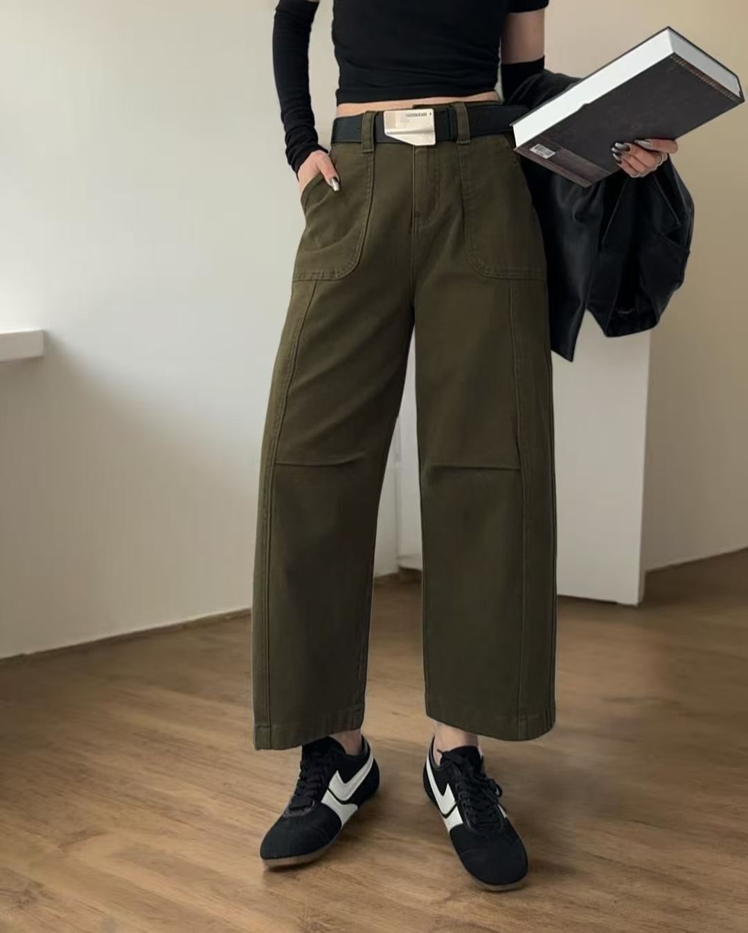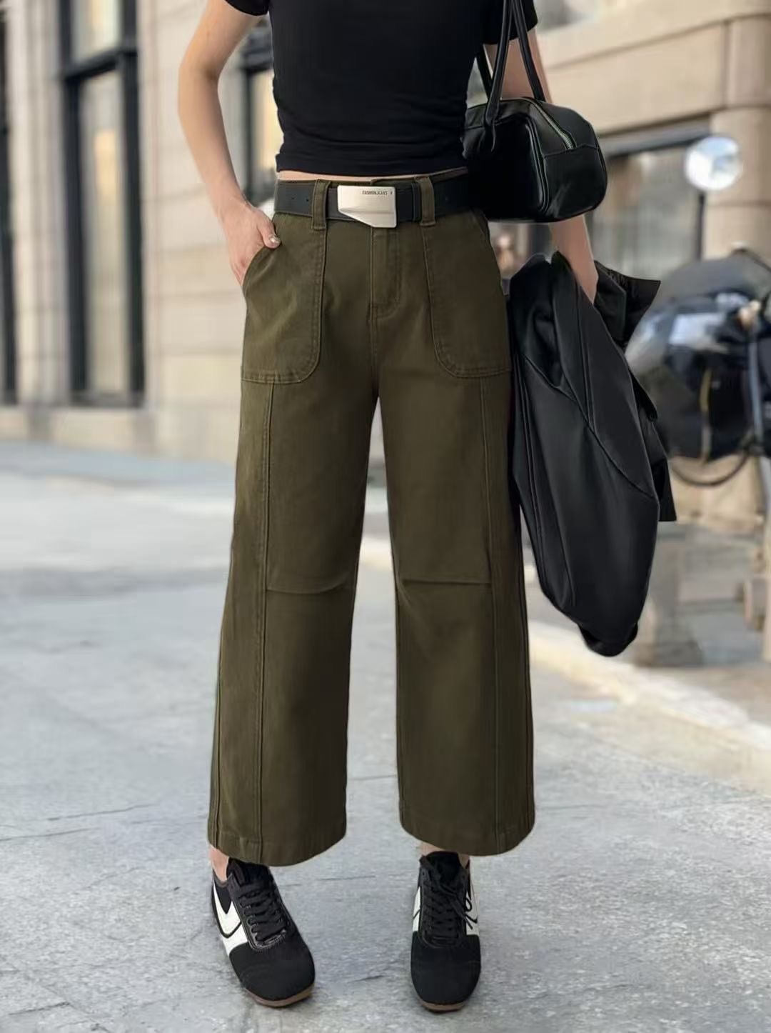 These trendy wide-leg cargo pants are a must-have addition to your wardrobe, offering both fashion and functionality.