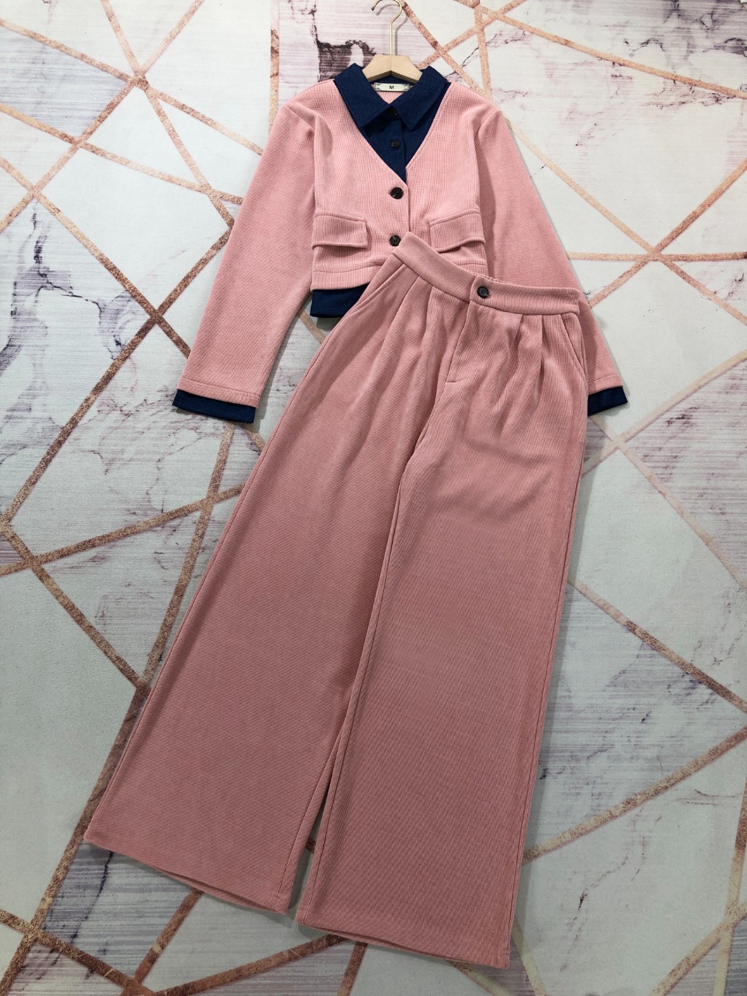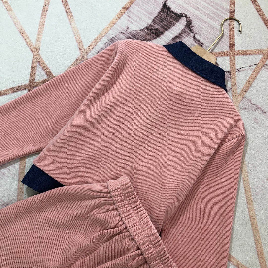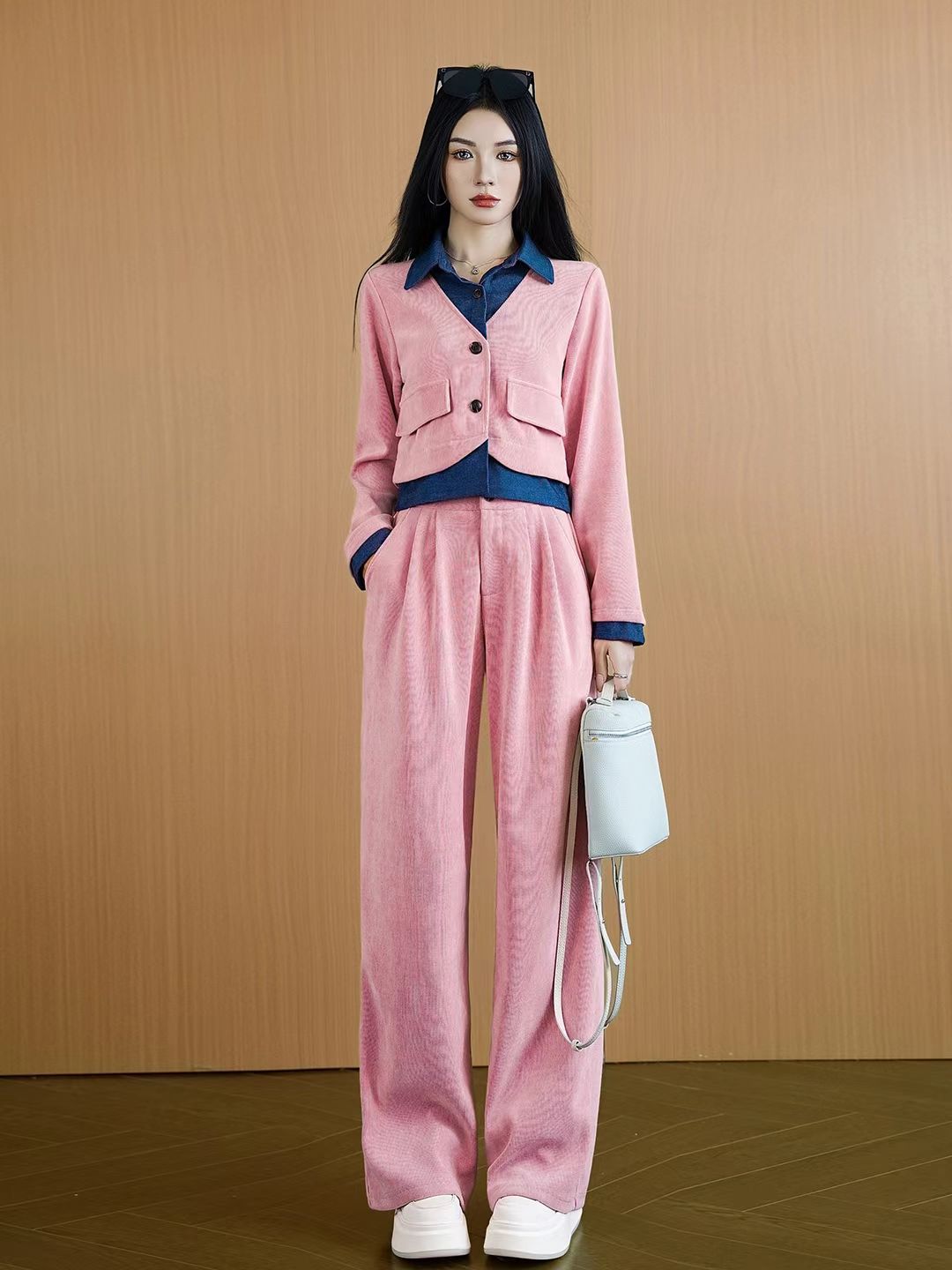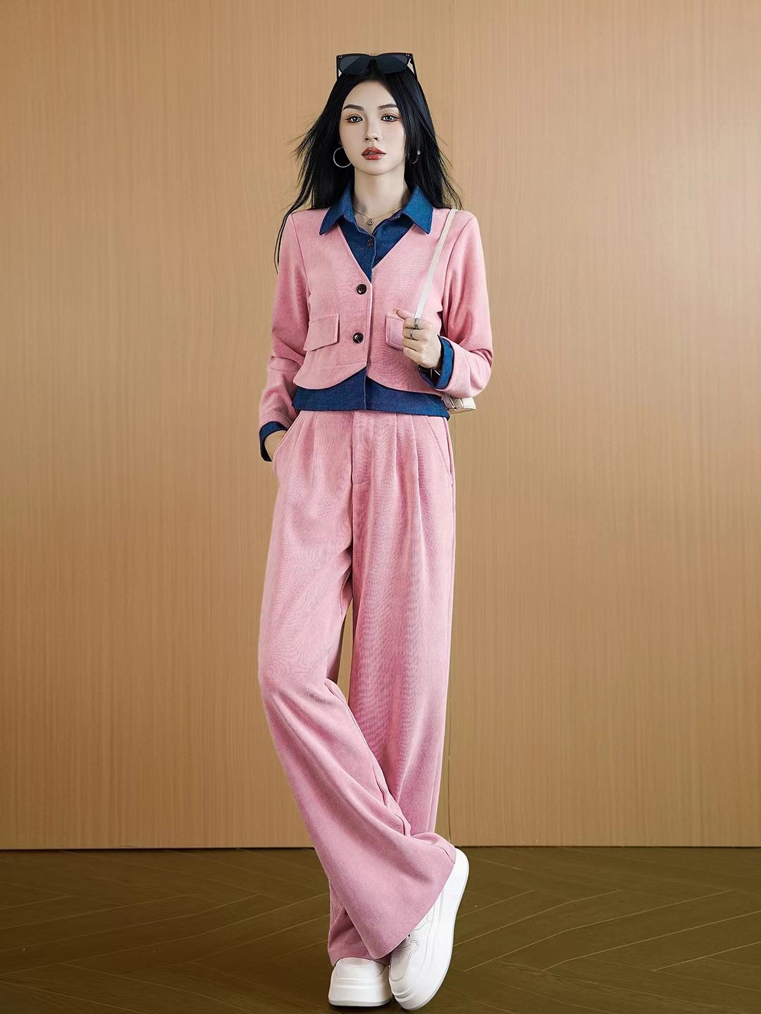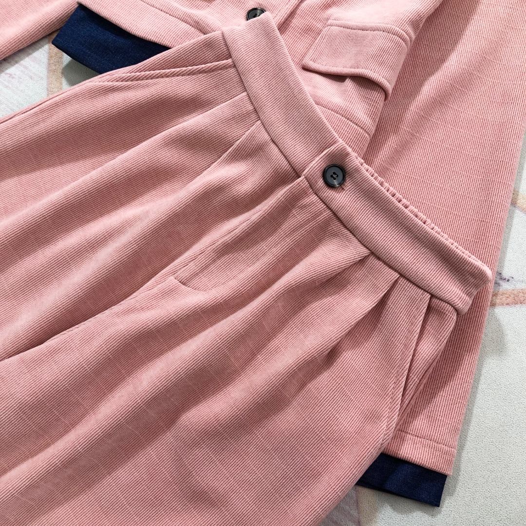 Tags: Fashionable Women's Suit, Long Sleeve Corduroy Jacket, Pink Corduroy Outfit, Two Piece Corduroy Set, Women's Wide Leg Pants
