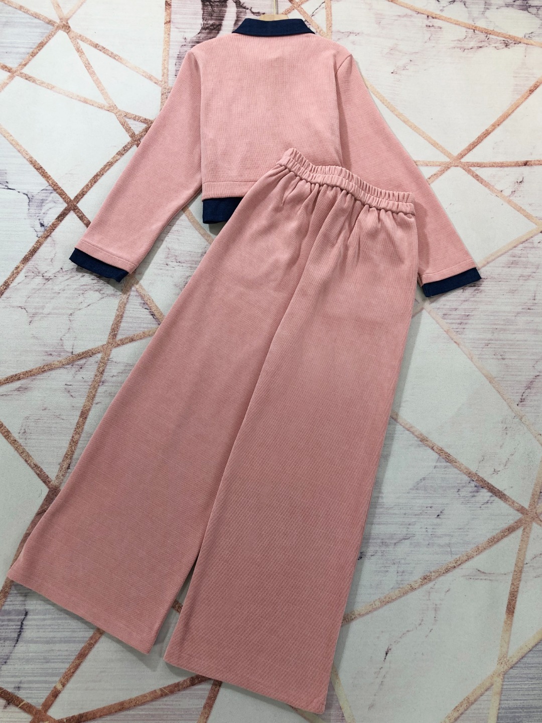- Two-Piece Set: Includes a long sleeve jacket and wide leg pants.