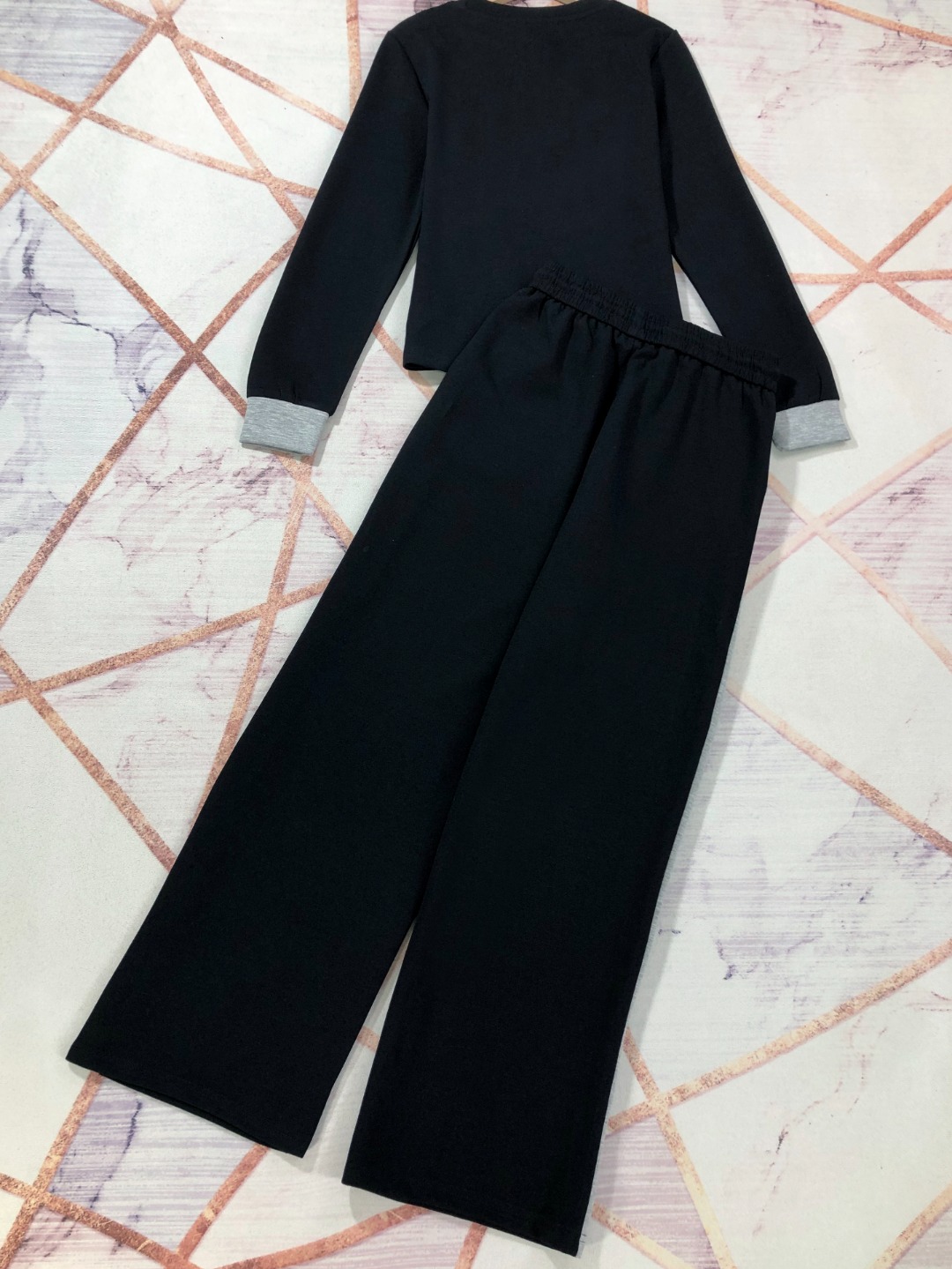 Elevate your wardrobe with this trendy two-piece set. Includes a comfy long-sleeve sweatshirt and stylish wide-leg pants, perfect for a chic, relaxed look.