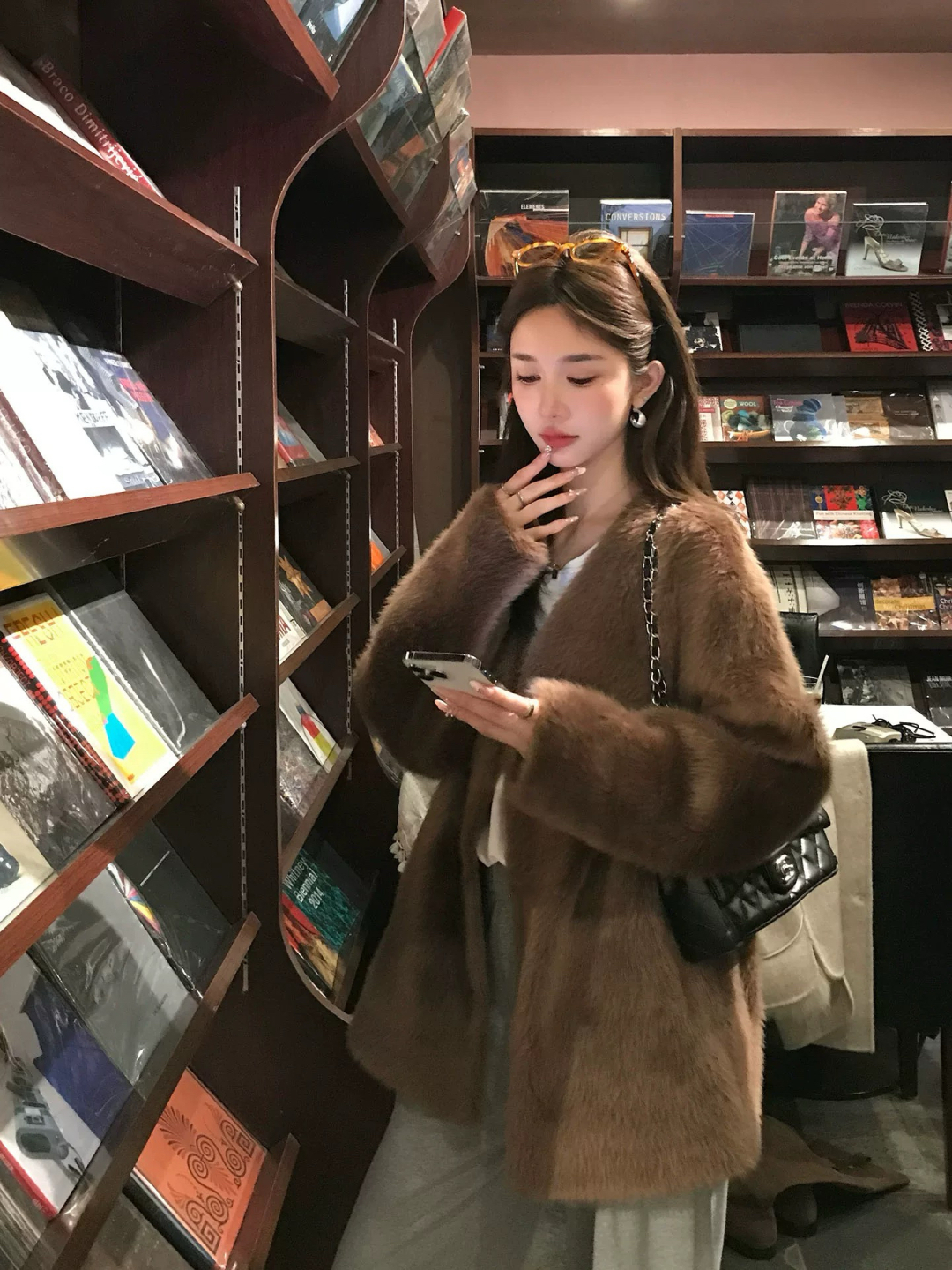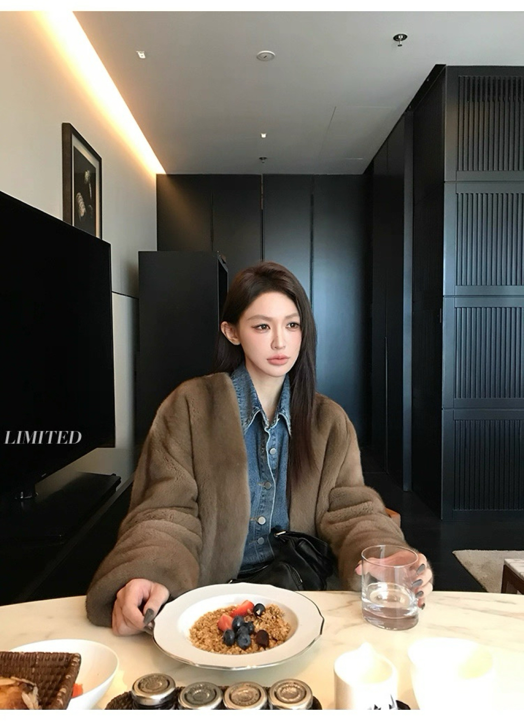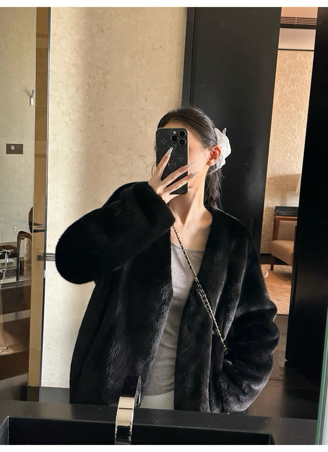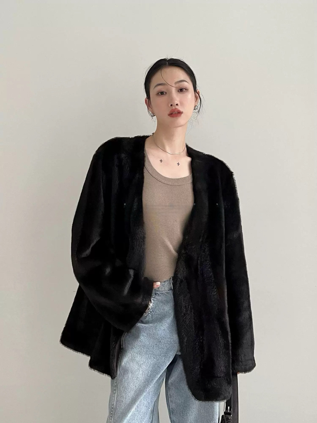 This exquisite faux mink fur coat brings vintage glamour to the modern wardrobe. Crafted with attention to detail, it offers both style and comfort.