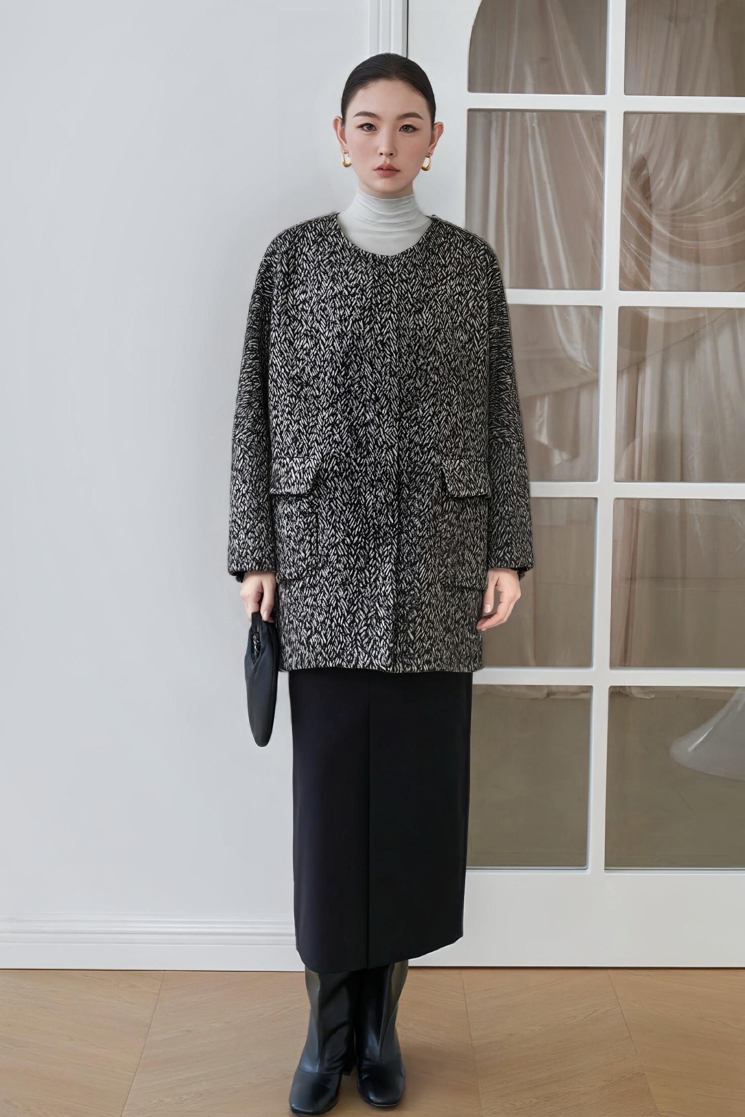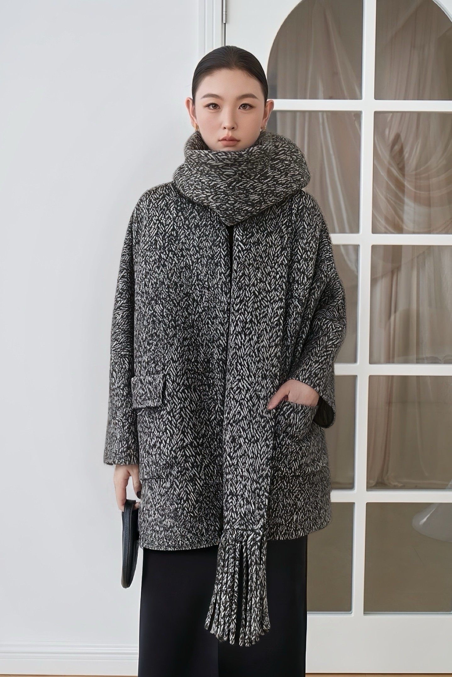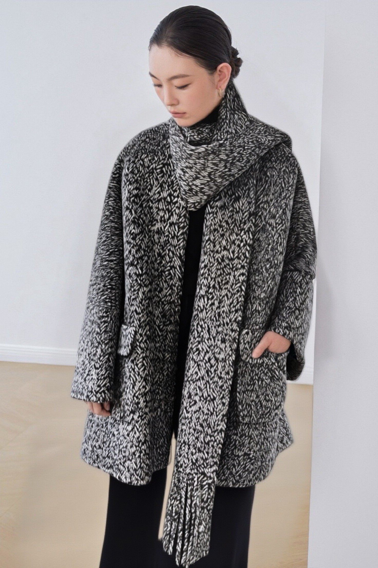 Elevate your winter wardrobe with our Wool Blend Herringbone Scarf Coat. This timeless piece combines classic design with modern functionality, ensuring you stay warm and stylish all season long.