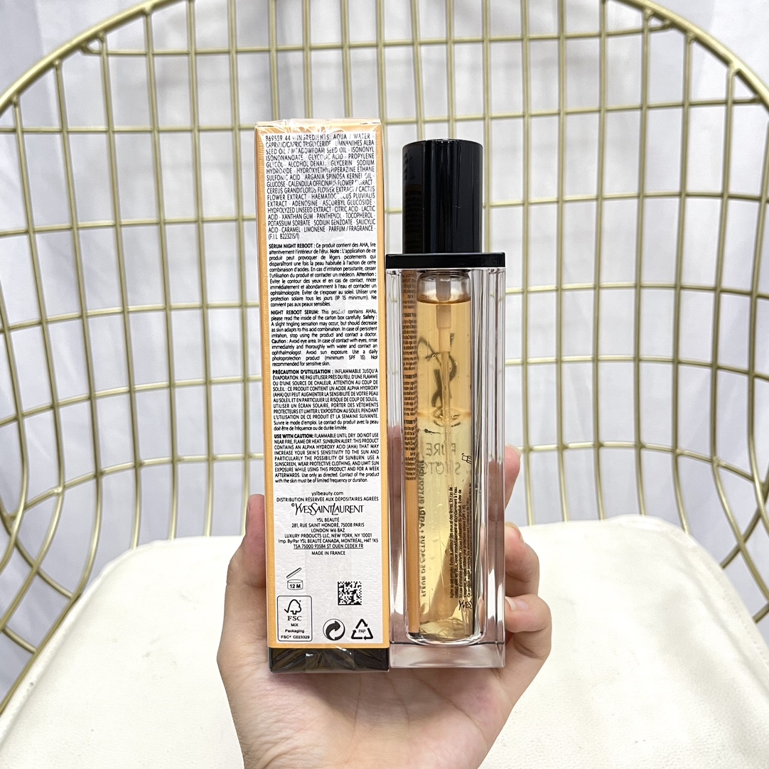 Introducing Yves Saint Laurent's Pure Shots Night Reboot Serum, your nightly solution for tired and dull skin. This innovative serum is designed to combat the effects of fatigue and resurface your skin while you sleep.