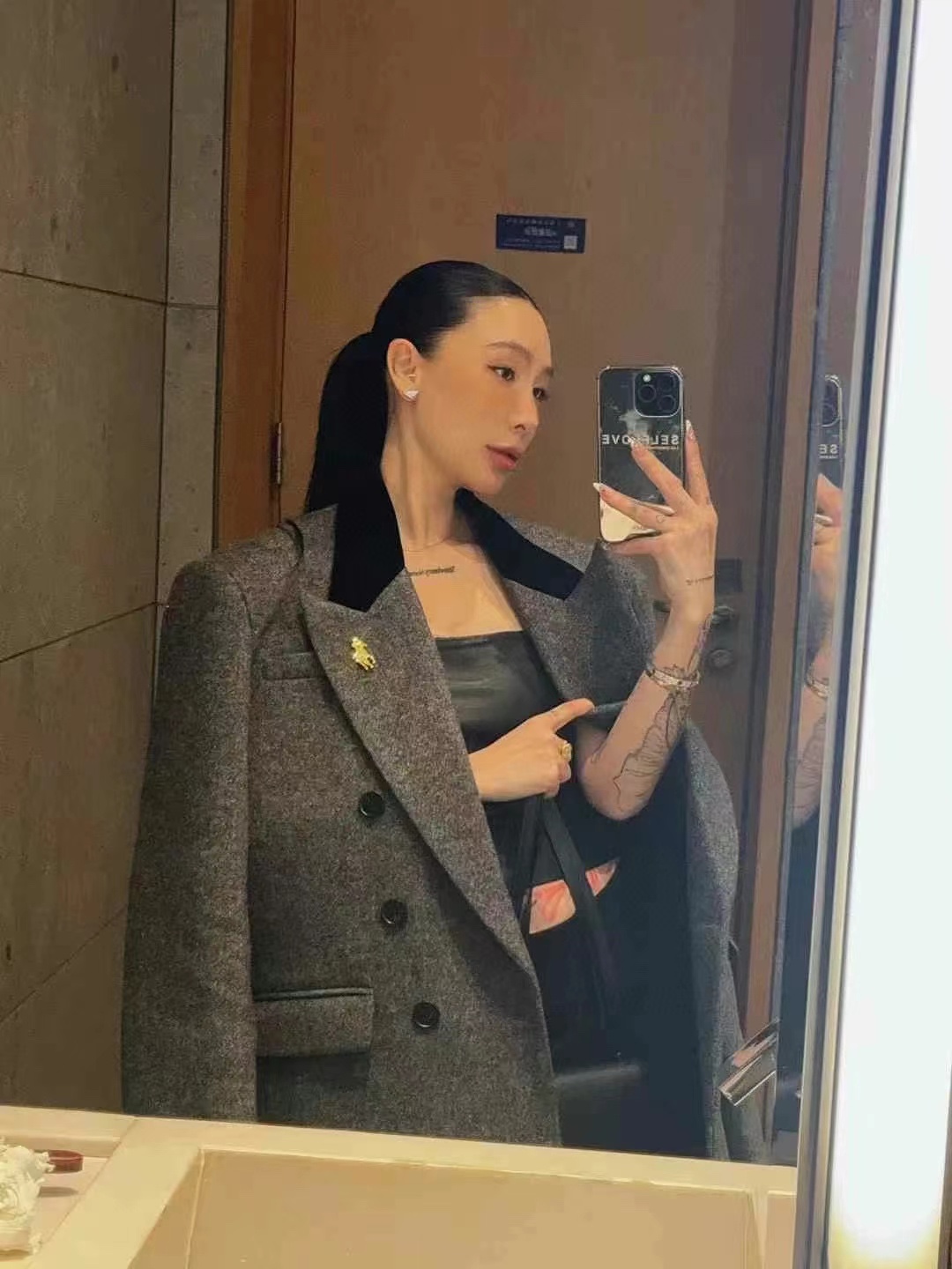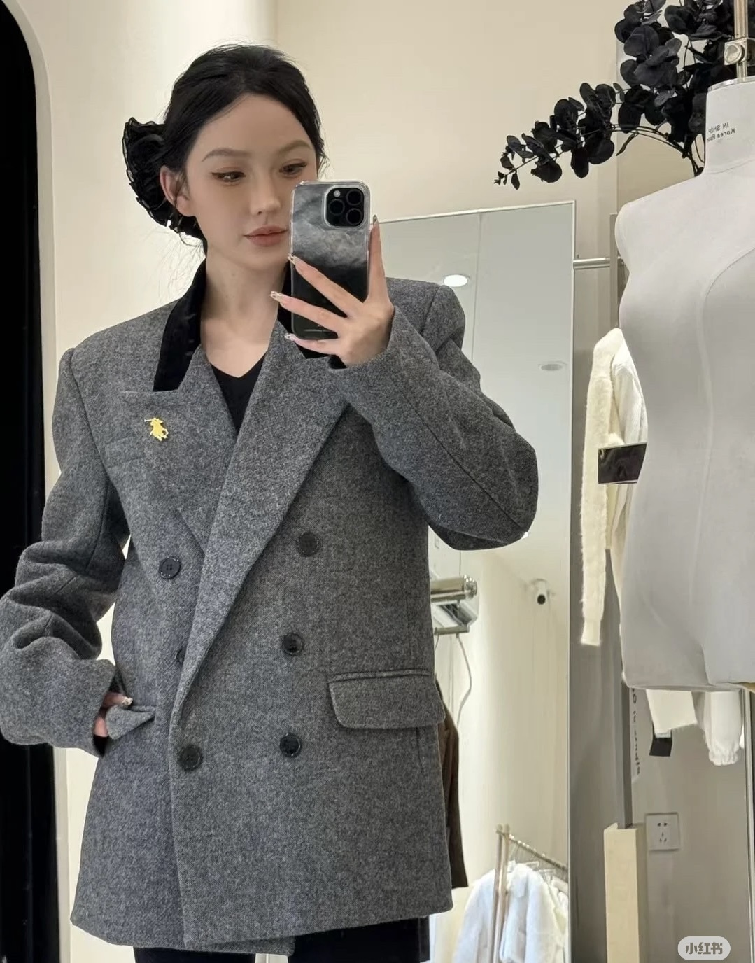 - Structured, padded shoulders for a defined silhouette