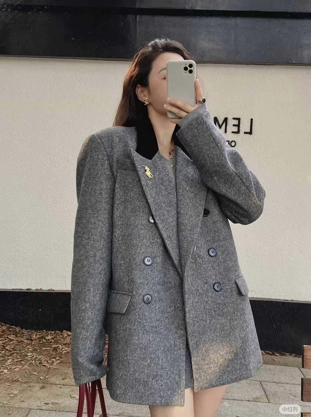 - Flattering 6-button, double-breasted design